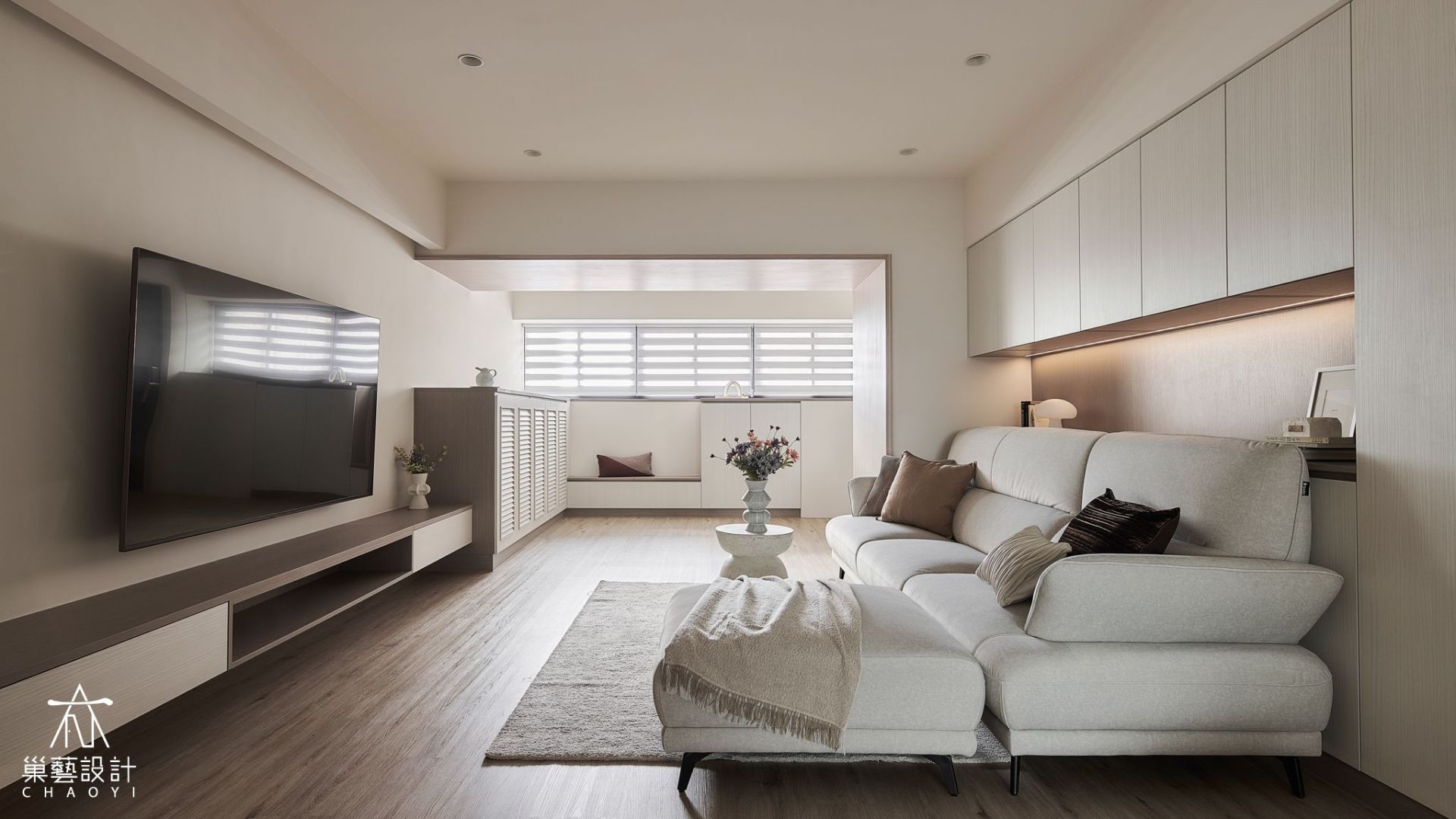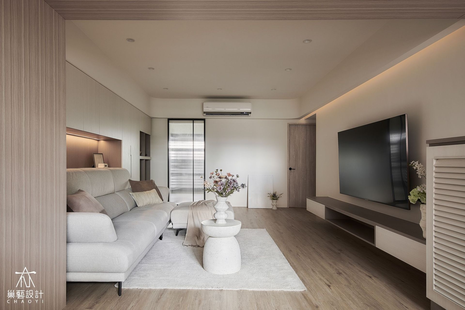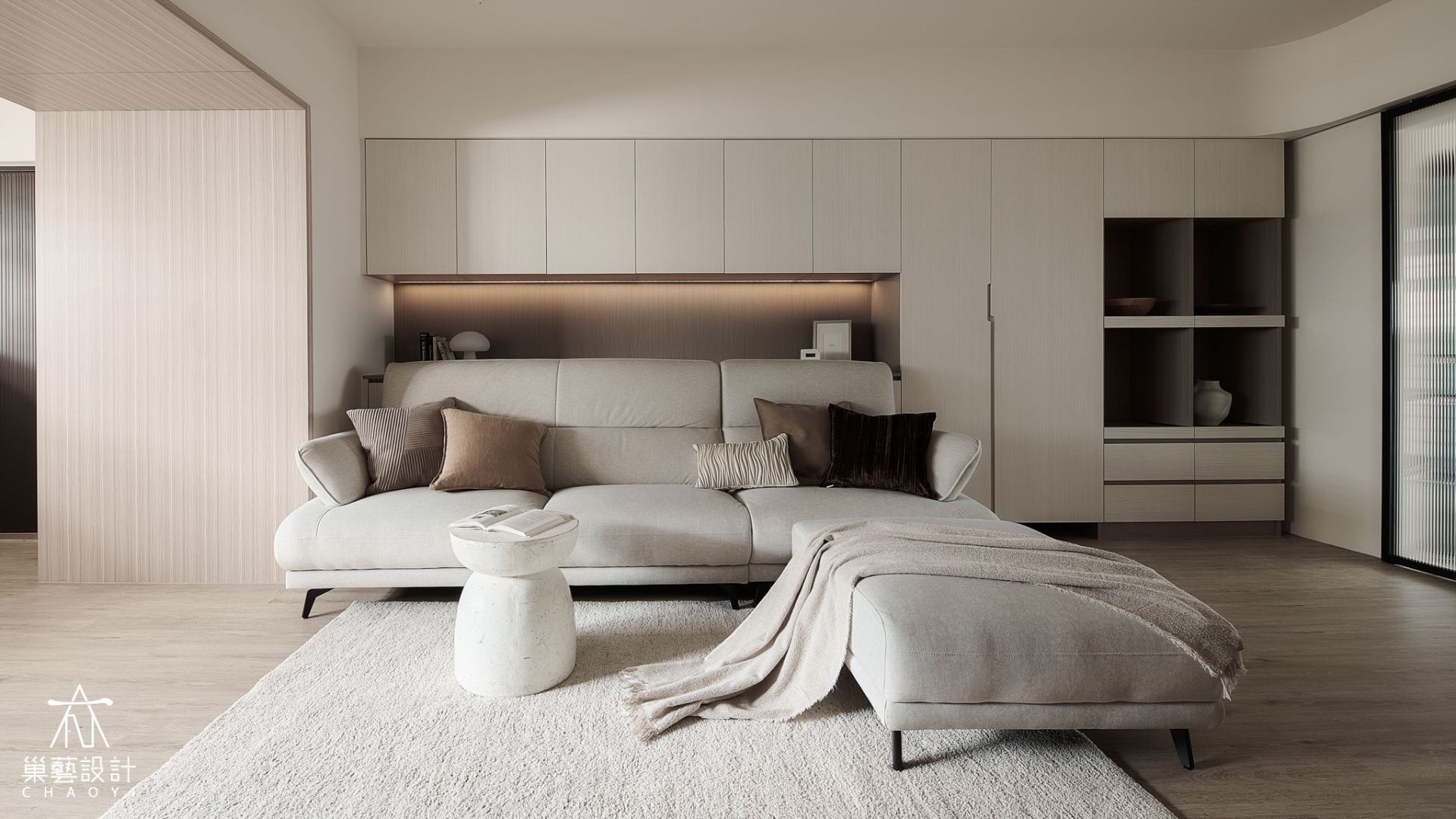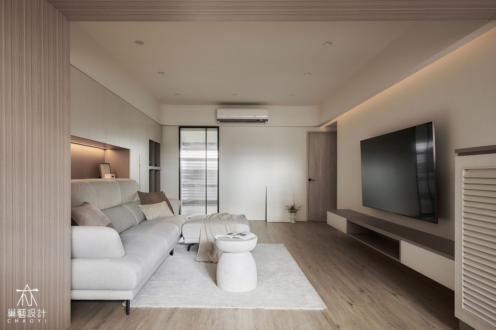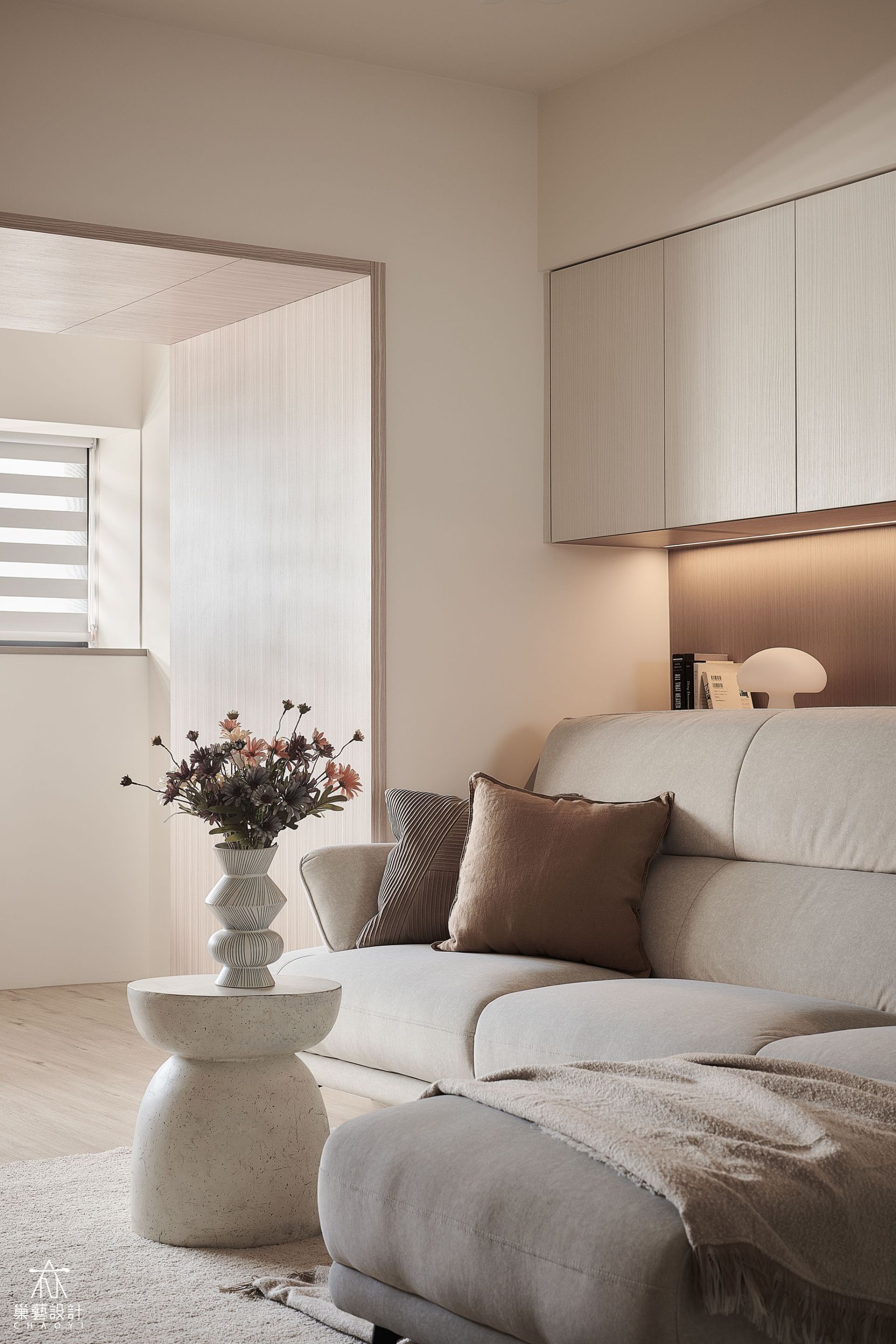 這個現代簡約風的老屋翻新作品,將木質元素與淡雅色彩連結,為空間注入了一抹柔和與溫暖。全室以米色調與木地板為基底,搭配間接照明與燈條設計,打造出層次分明的舒適居家環境,透過細緻的木質紋理與簡潔的線條,空間呈現出一種無壓的寧靜感。